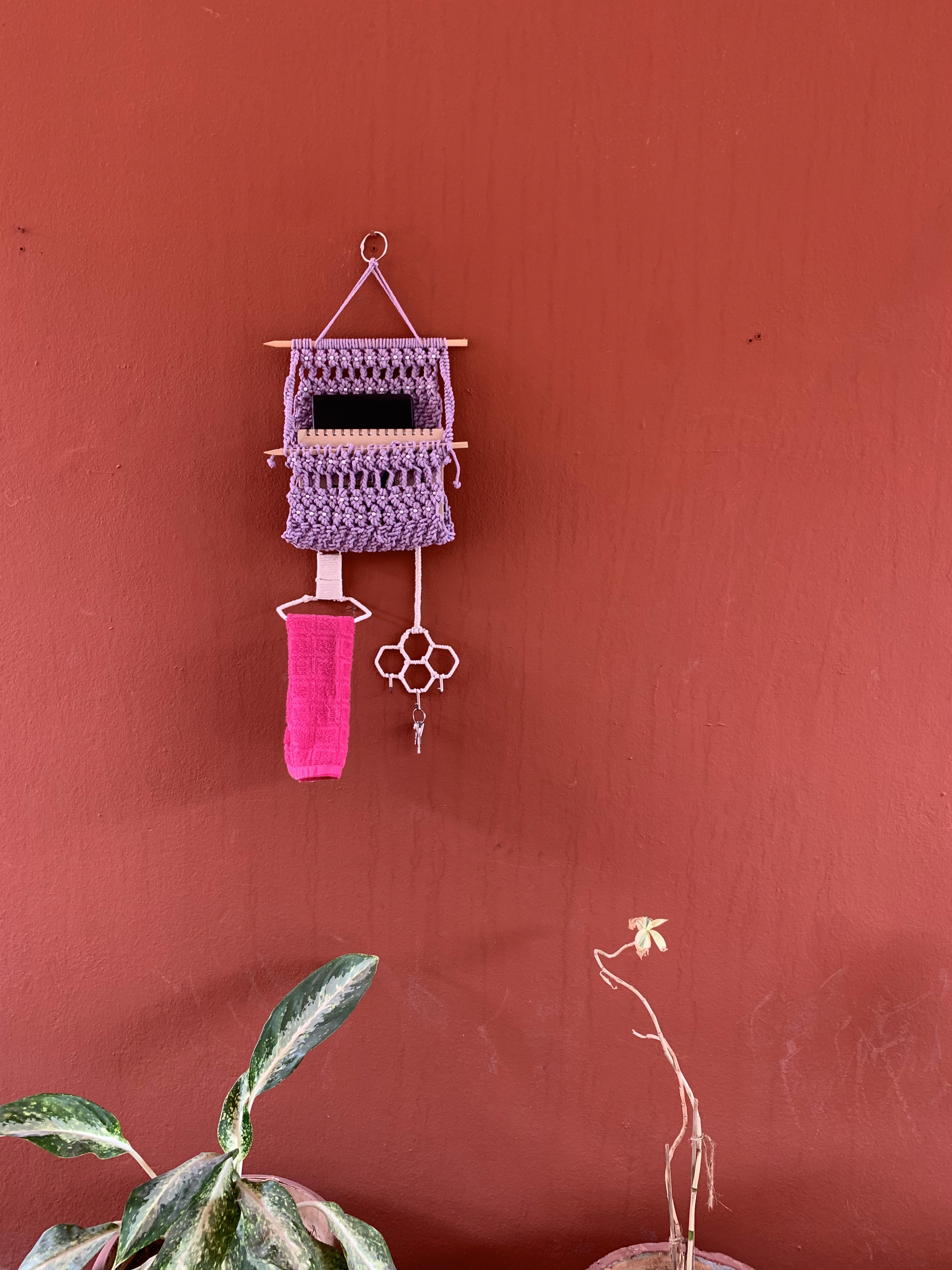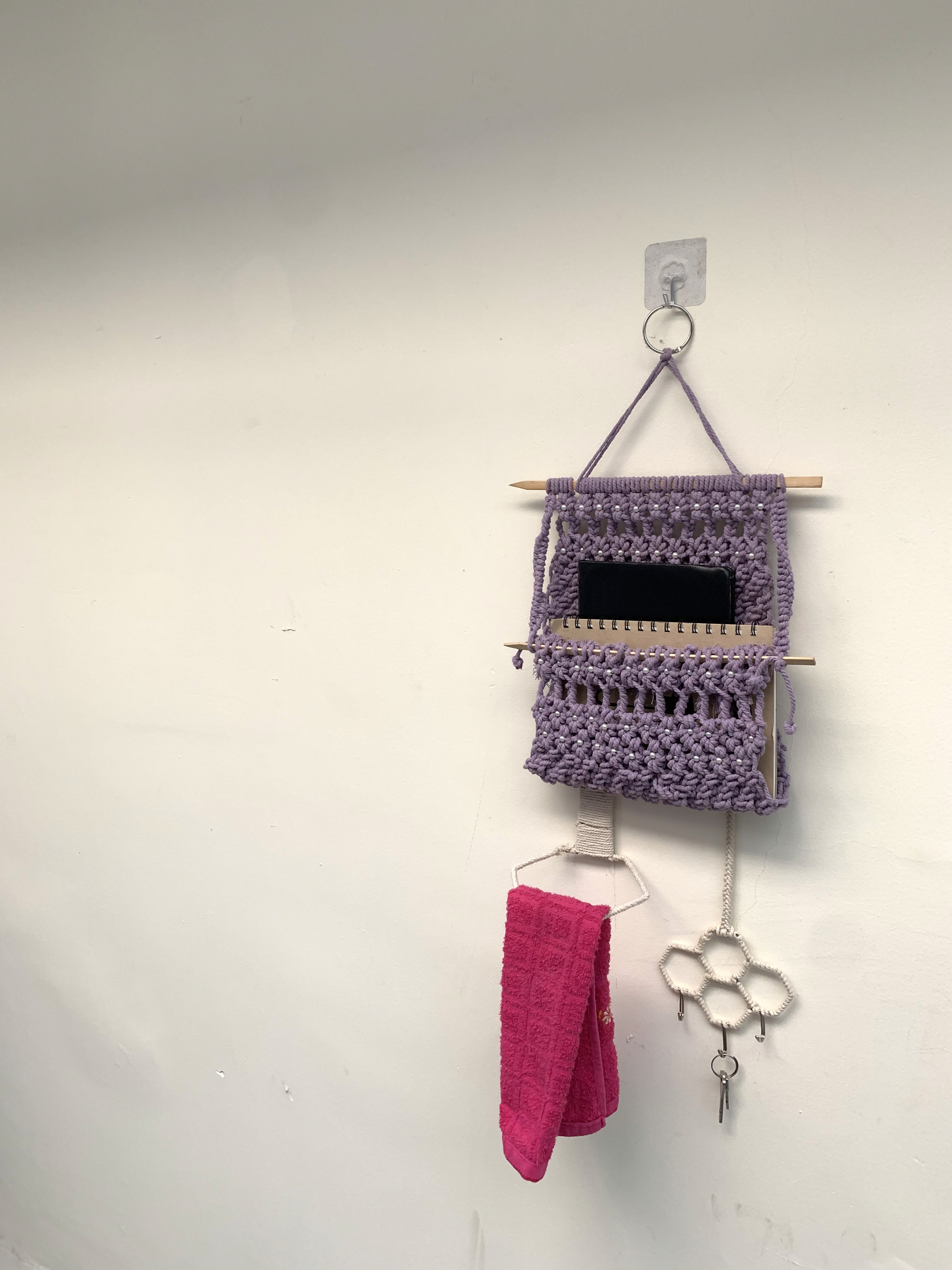 Crafted with care and creativity, using intricate yarn knots and sturdy metal accents. Perfect as a book holder, key organizer etc. It adds both functionality and charm to any space. Its unique design blends traditional craftsmanship with modern practicality, making it an idea choice for minimalists and décor enthusiasts alike